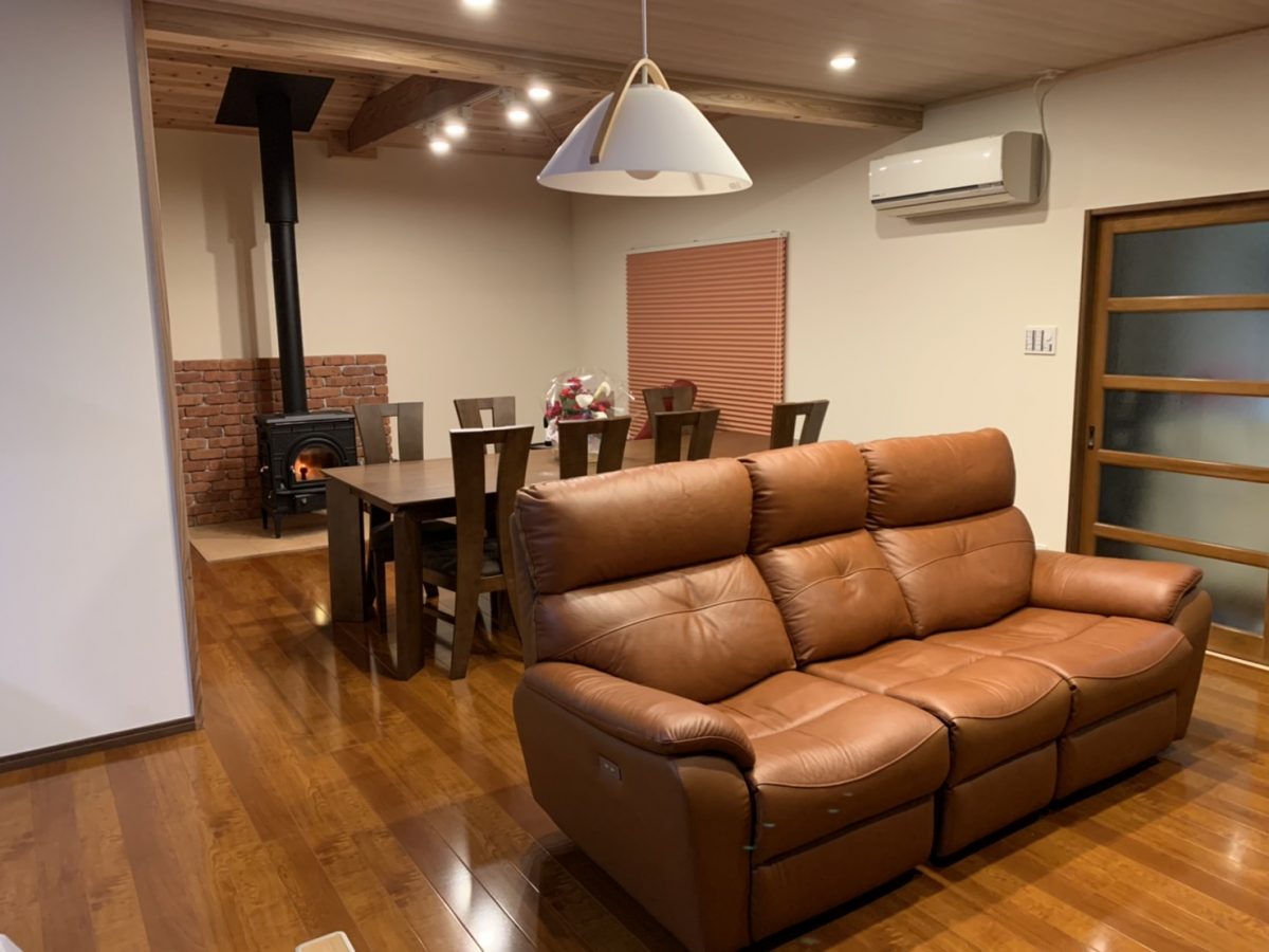 奥の壁にはお客様が用意した薪ストーブを設置するため、