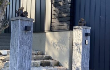 ついに湯布院別荘が完成しました!! 最後の仕上げとして玄関先の門柱の両脇にシーサーが取り付けられました。 沖縄の伝統的な守り神、シーサー…