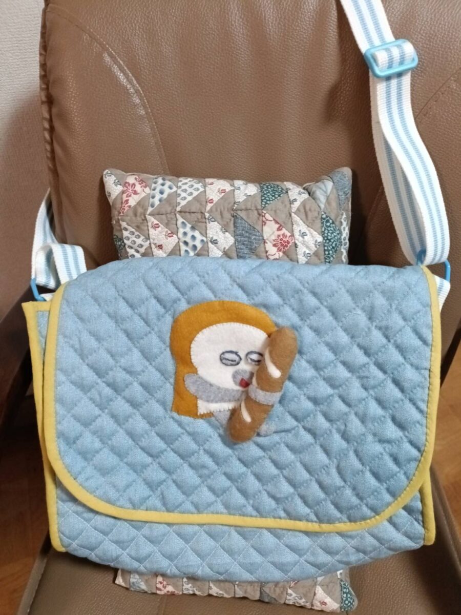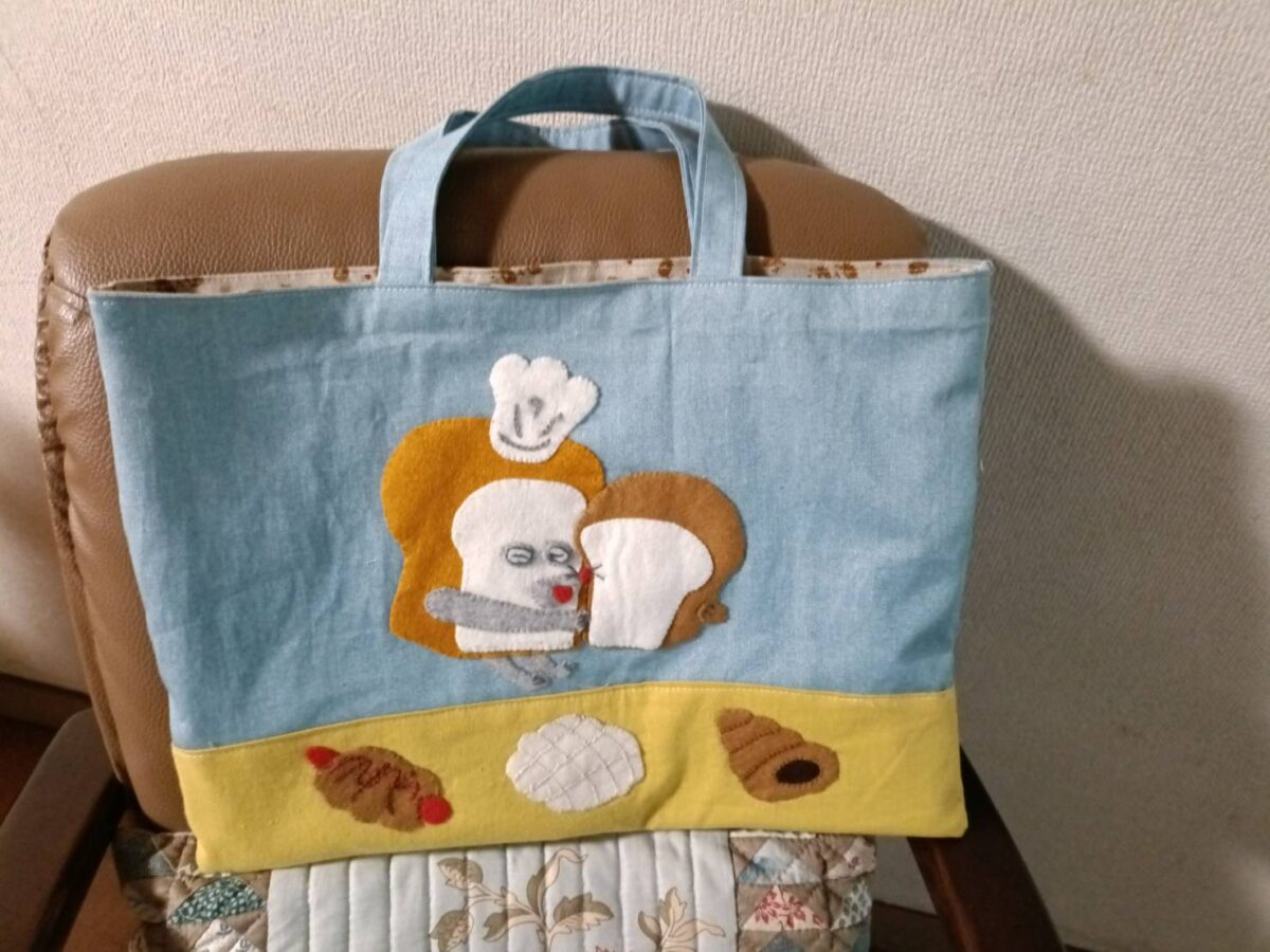 お孫さんに作られたパンどろぼうの通園バッグです。