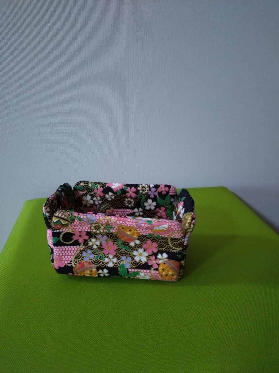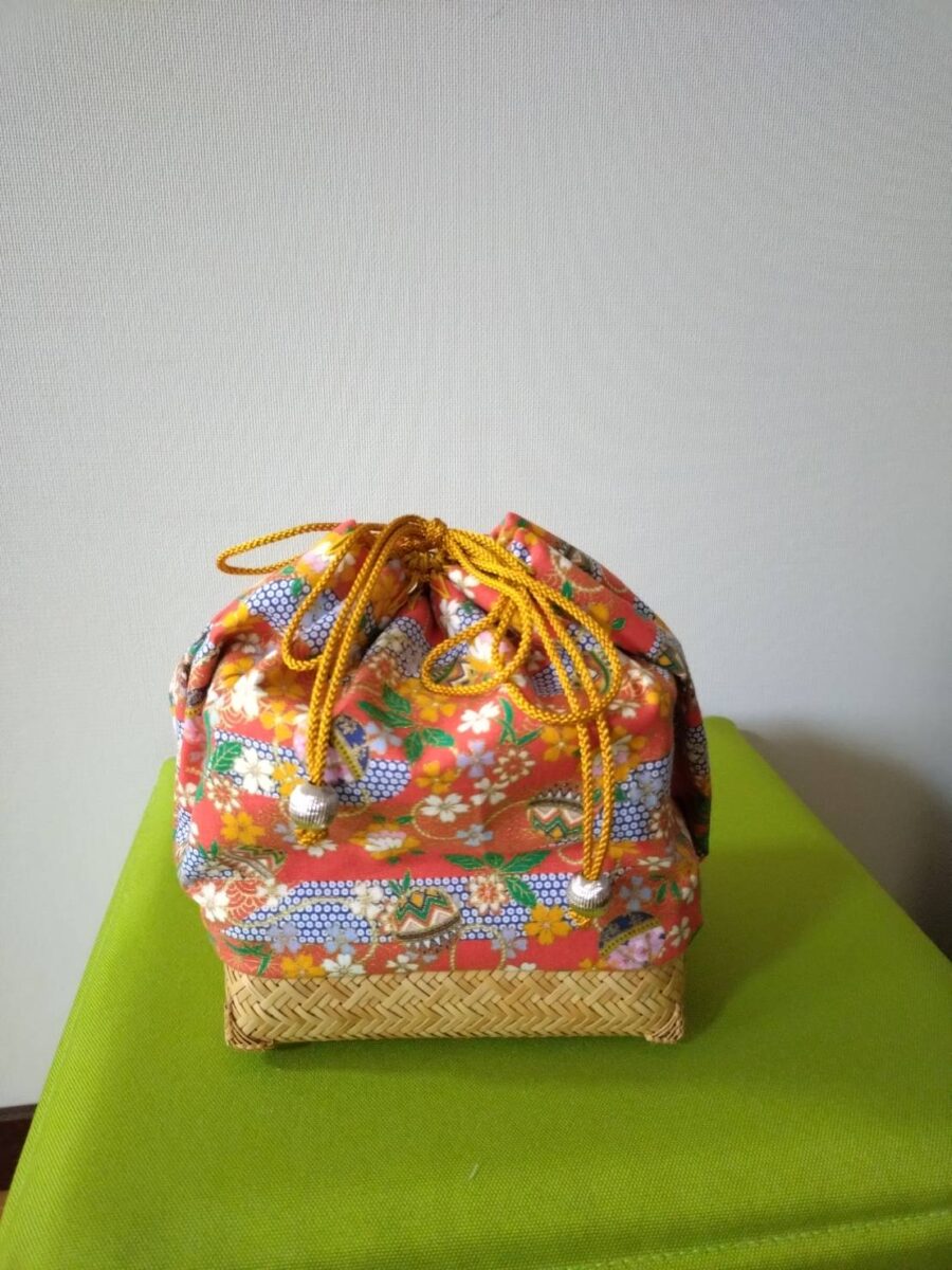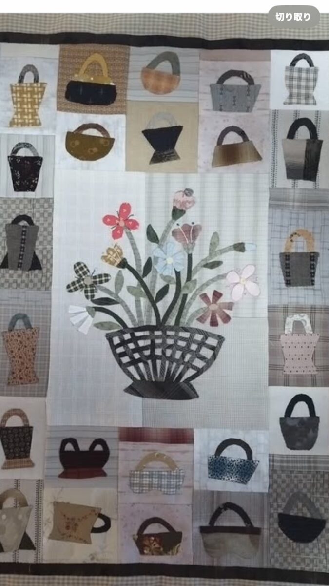 竹籠とパッチワークの美しいコラボ作品となりました。