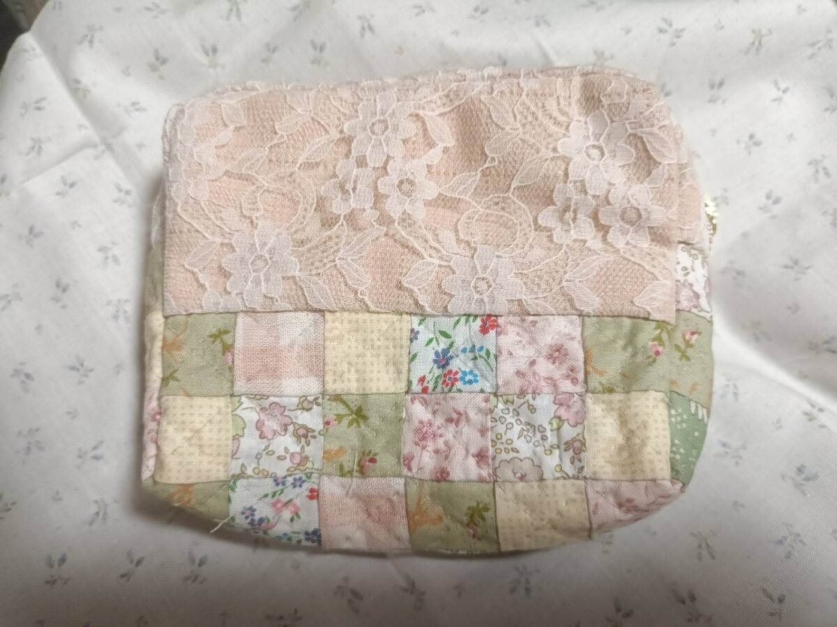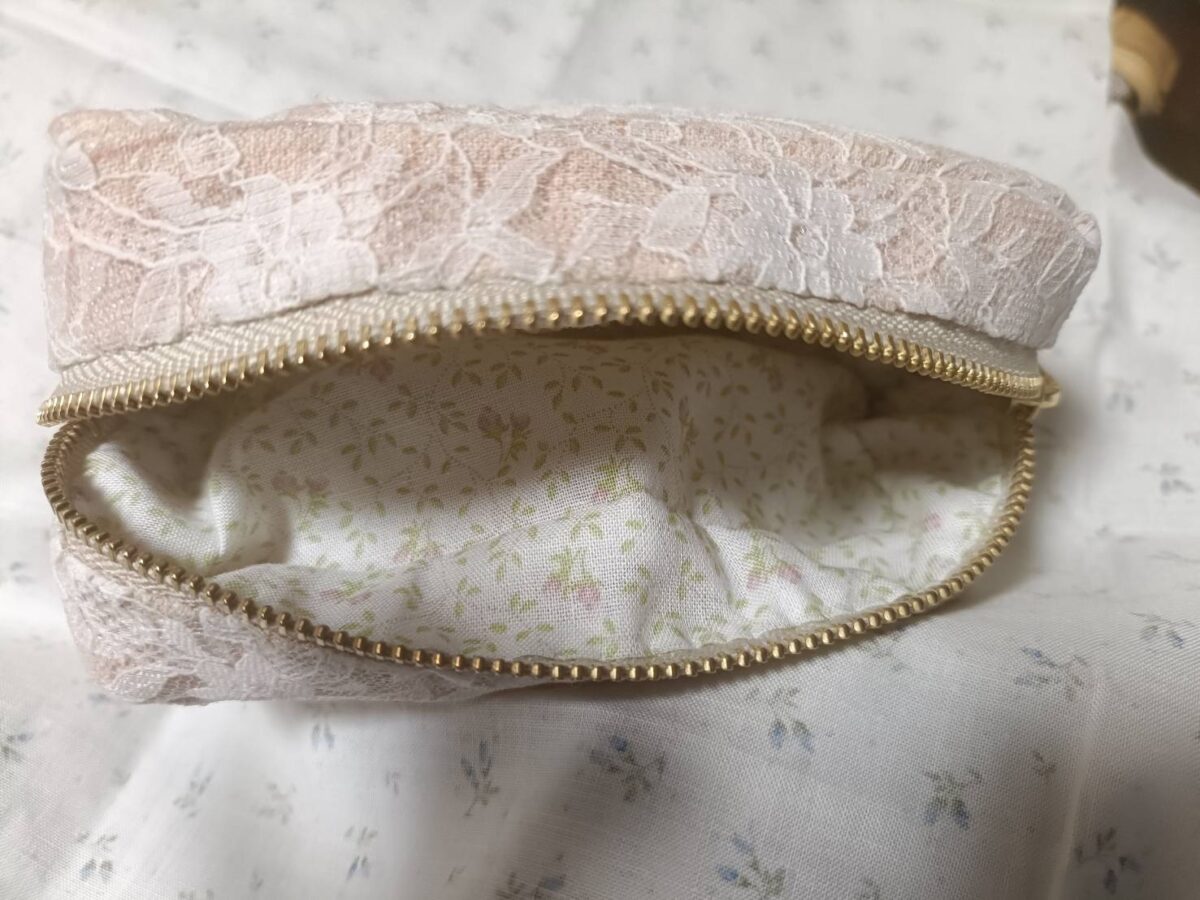 爽やかな色合いとレースがマッチした、素敵なポーチです。