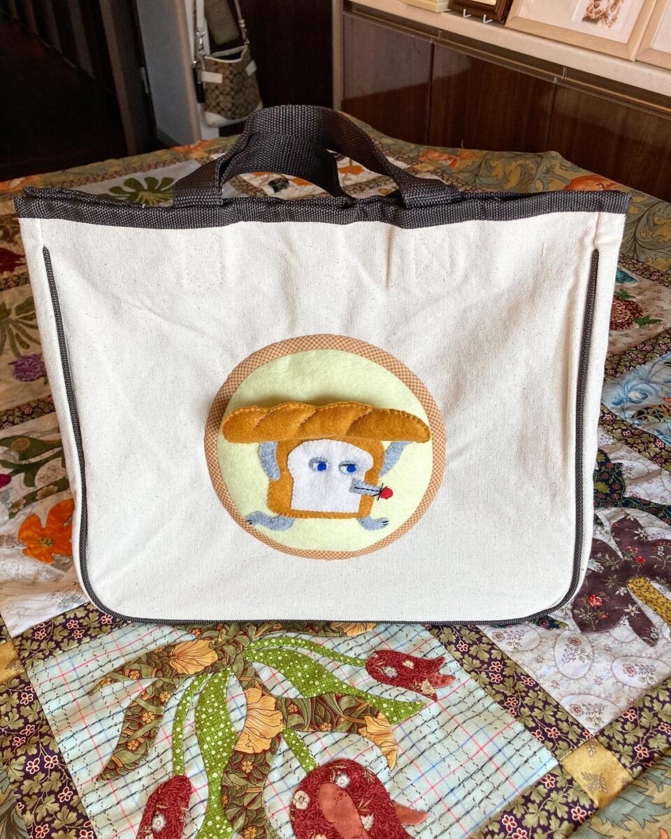 既製のバッグにぱんどろぼうのアップリケを施しました。