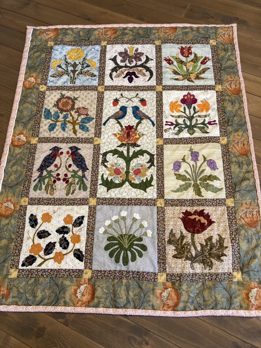 ウィリアムモリスの布をたくさん使ったボルチモアキルトです。