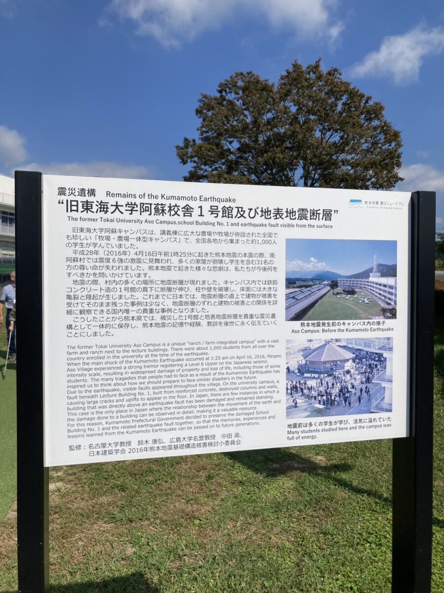 2025.10.19 貞さんのタワゴト tomoko 研修旅行 先日の連休最終日、熊本まで足を伸ばしてバス旅行してきました。 9年前の熊本地震の被災地である、 南阿蘇村の旧東海大学阿蘇校舎や資料館を訪ねました。 地震断層のずれと建物の被害の関係を詳細に観察できる 国内唯一の貴重な場所でした。 熊本地震で起きた様々な悲劇は私たちに、 今後何をすべきかを問いかけてきます。 建築を営む者として、その責任の重さを改めて感じました。