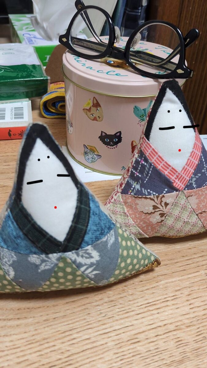 2026.02.21 cotocoto tomoko お雛様 2月のパッチワークは新しいメンバーお二人を迎えて 全員参加の楽しい賑やかな会となりました。 お持ち頂いたお雛様のパッチワーク人形が可愛いくて 型紙を寸法とりして作ってみました。 不思議と各々、少し違うお雛様が出来上がって来ましたが 「みんな違ってみんないい」by金子みすゞ ですよね♡ かわいいお雛様を眺めながら、 なんだか温かい気持ちになりました。