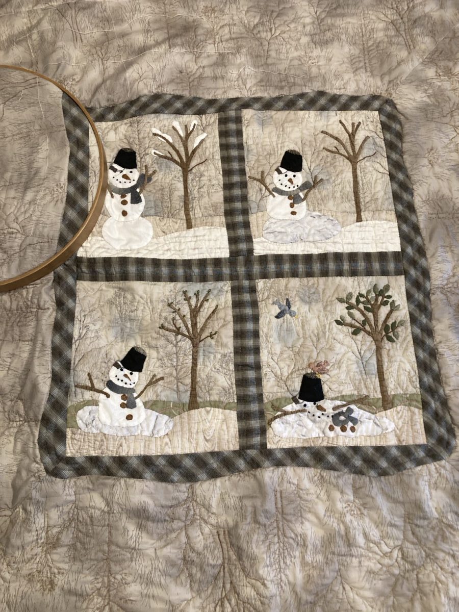 可愛い雪だるまさんの物語が、4つのアップリケで構成されています。